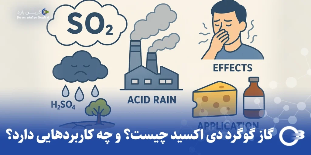 | تعریف | گاز بیرنگ با بوی تند و تیز، فرمول شیمیایی SO₂، سمی و غیرقابل اشتعال | شناخته شده به نام سولفور دیاکسید | استنشاق طولانیمدت مضر است |